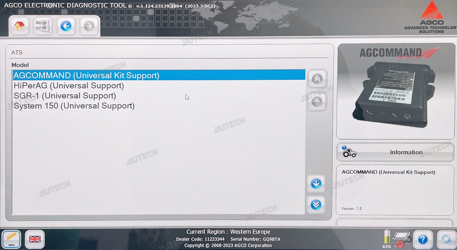 Όνομα Agco Μοντέλο για το διαγνωστικό εργαλείο του τρακτέρ Massey Ferguson Fendt AGCO